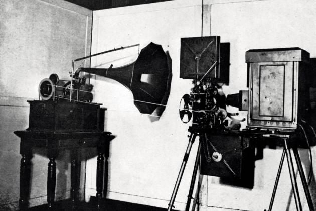 Een van de eerste films die je kon zien in een kinetoscoop was Fed Ott's Sneeze waarin je een assistent van Thomas Edison kan zien niezen. Later in 1895 maakte Thomas Edison een nieuw soort kinetoscoop, de kinetopone. Hierin had hij een fonautograaf gezet waardoor je er ook geluid bij kon horen .